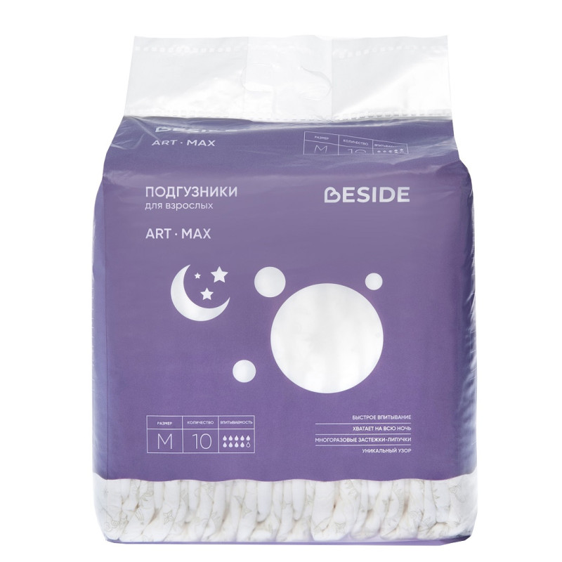 Впитывающие ночные подгузники для взрослых BESIDE космос, размер М, 12 шт: эффективная защита и комфорт